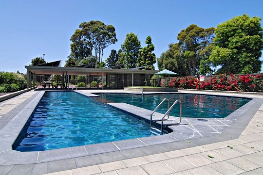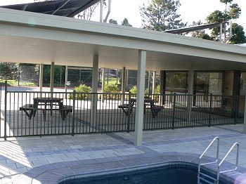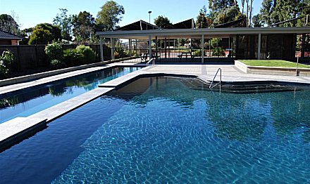 Community / Complex PoolsThese pools are covered by a N.Z. Standard and all details must meet these standards. As shown this site contains a 20.00 Meter Lap Pool and a Large family pool designed with an extensive step giving great seating, and a angular shape to allow family groups to gather. These pools are individually filtered, sanitized with Ozone and Ionic sterilizers. It also has an extensive covered area to beat those odd showers and allows shaded dining, with a complete kitchen. This roof has a huge area for solar heating. These pools are not covered as the logistics don't really work in these circumstances unless staffed full time. With automatic cover this can be overcome with timers.