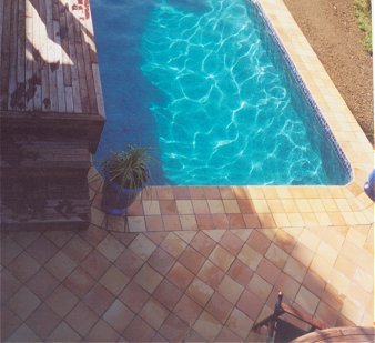 This has been a popular choice where the pool is located on sloping ground, and also has the advantage of not holding the heat, and are quick drying.