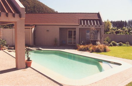 When designing pool and paving area remember to slope away from pool and provide catchment and discharge for storm water.