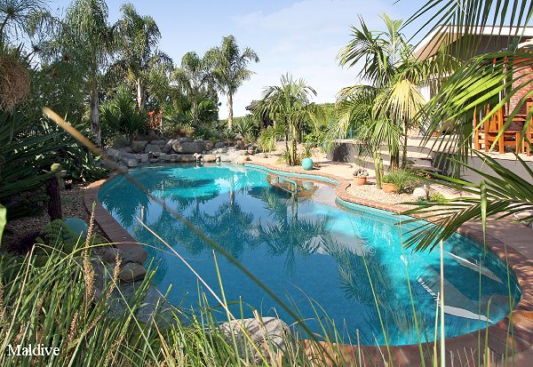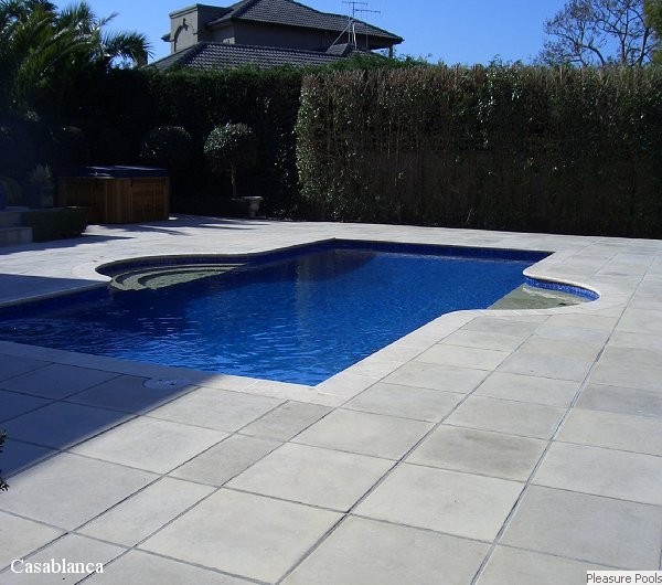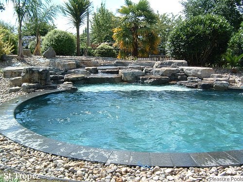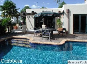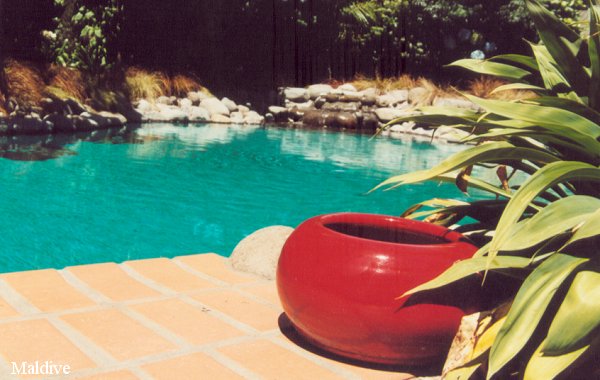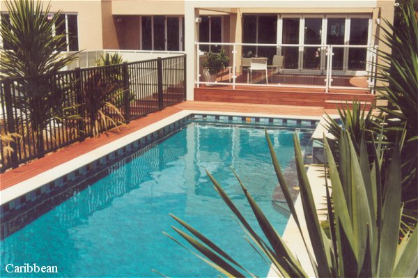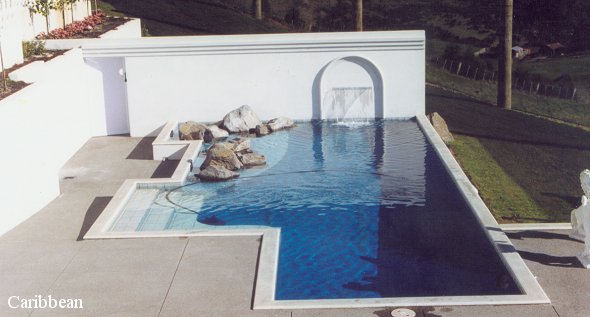 Besides the liner, Pleasure Pools have as standard a unique tiled waveband (see Easycare). This strip around the pool at water level takes the brunt of wear and tear.